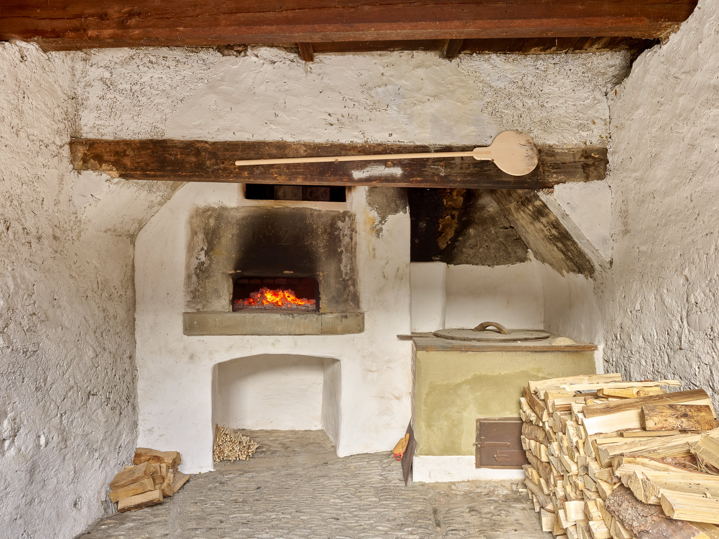 Höhepunkt ist die Restaurierung des Backraums mit dem Backofen. Die Ofenstirn des Backofens von 1823 war noch intakt, der Feuerraum war wegen einer Stallerweiterung jedoch beschädigt. Der Ofenbauer rekonstruierte die beschädigten Partien und die Rauchabzüge originalgetreu. Heute wird im Backofen wieder gebacken – wie früher.