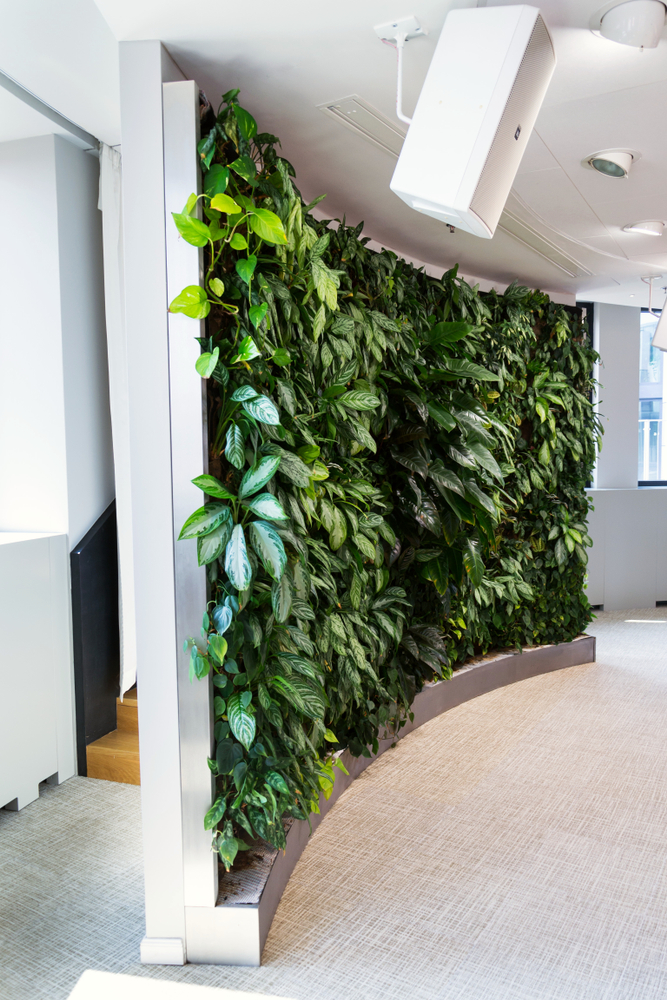 Alternativ: Eine von den Wändern freistehende Pflanzenwand im Raum errichten