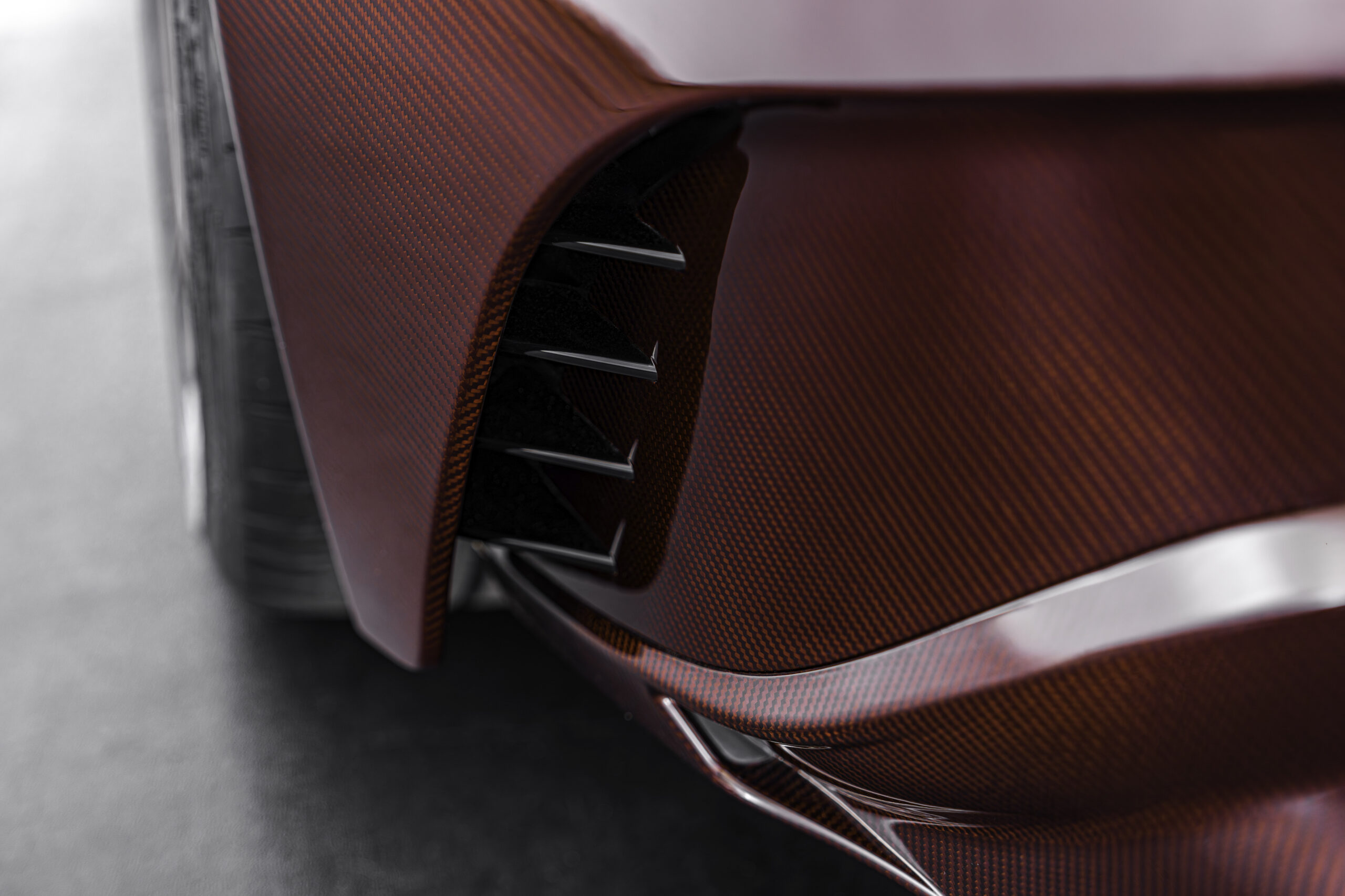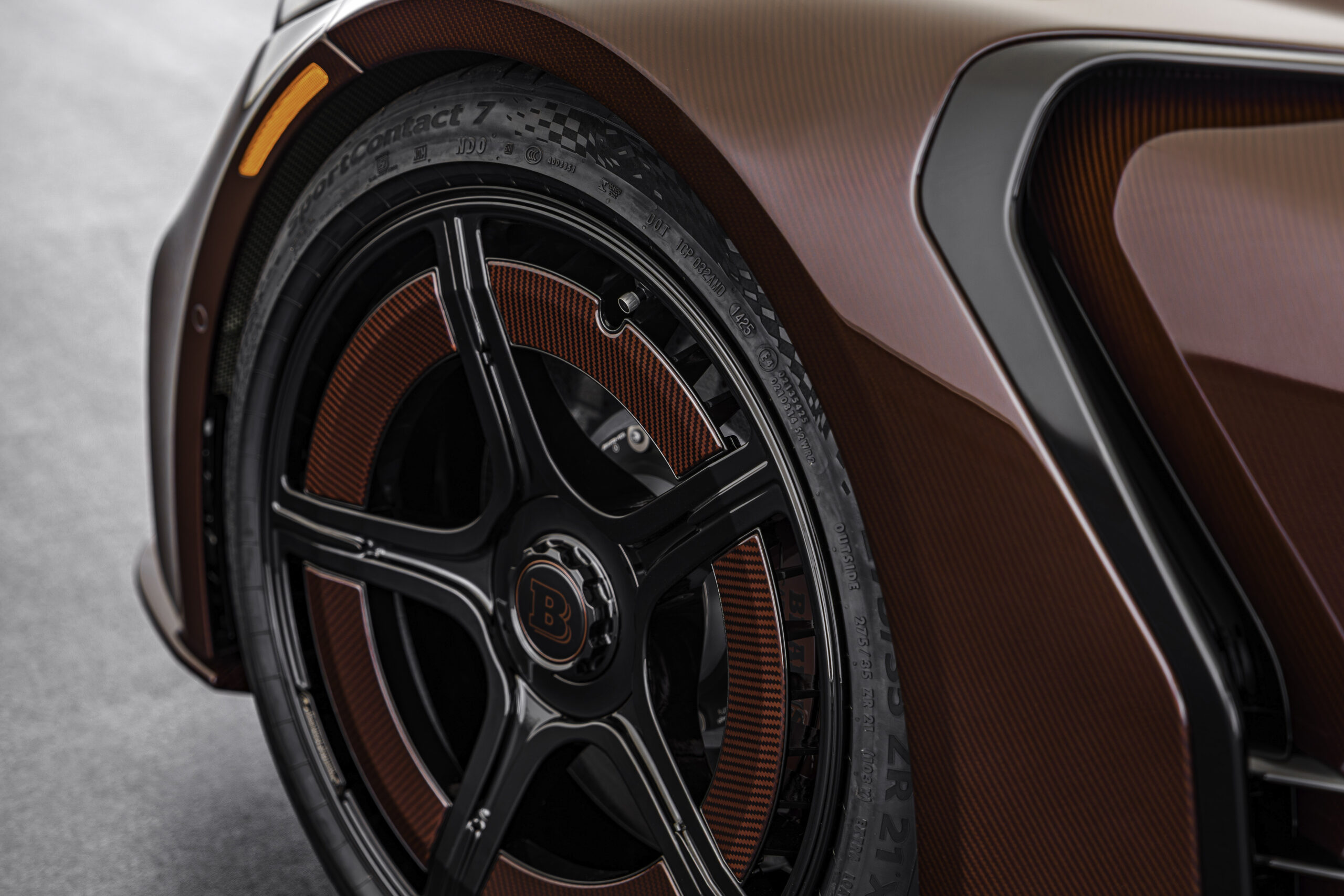 Neben dem aufregenden Signature Styling legten die BRABUS‑Designer selbstverständlich auch grossen Wert auf eine ausgefeilte Aerodynamik, um einen hohen aerodynamischen Abtrieb an der Vorder‑ und Hinterachse zu erreichen. Ein weiterer Fokus lag auf der optimalen Frischluftzufuhr zu allen Aggregaten und den Bremsen an Vorder‑ und Hinterachse. Was man an Details wie den ebenfalls aus rotem Sicht‑Carbon produzierten Aeroblades für die BRABUS Monoblock P Räder erkennen kann, die während der Fahrt, durch ihre ausgeklügelte Formgebung, die beim Bremsen erzeugte Wärme aus den Radhäusern abführen.
