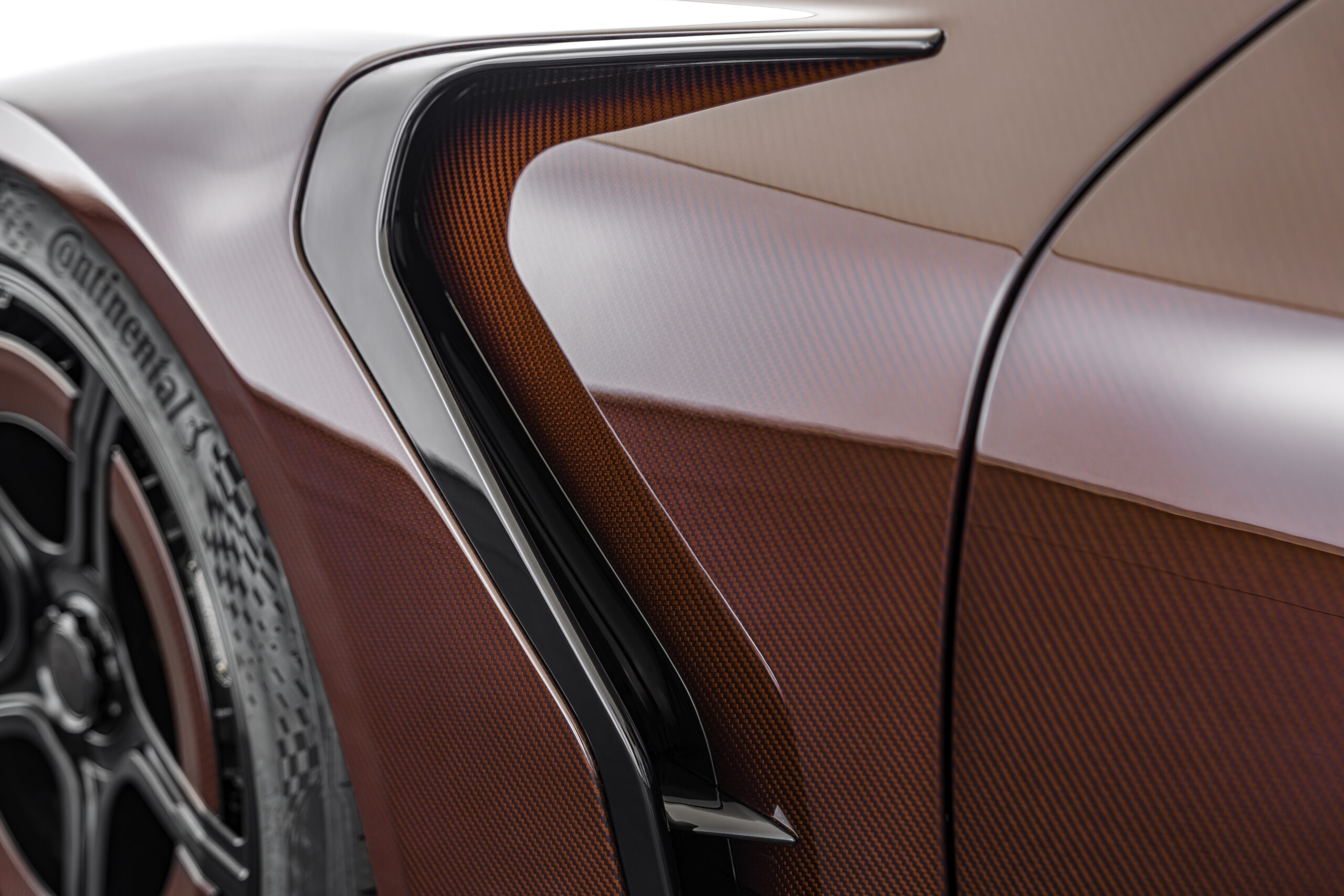 Ebenso dynamisch präsentiert sich die im Windkanal entwickelte BRABUS ROCKET GTC Karosserie, die in der hauseigenen Carbon‑Produktion komplett aus diesem Hightech‑Compound produziert wird.