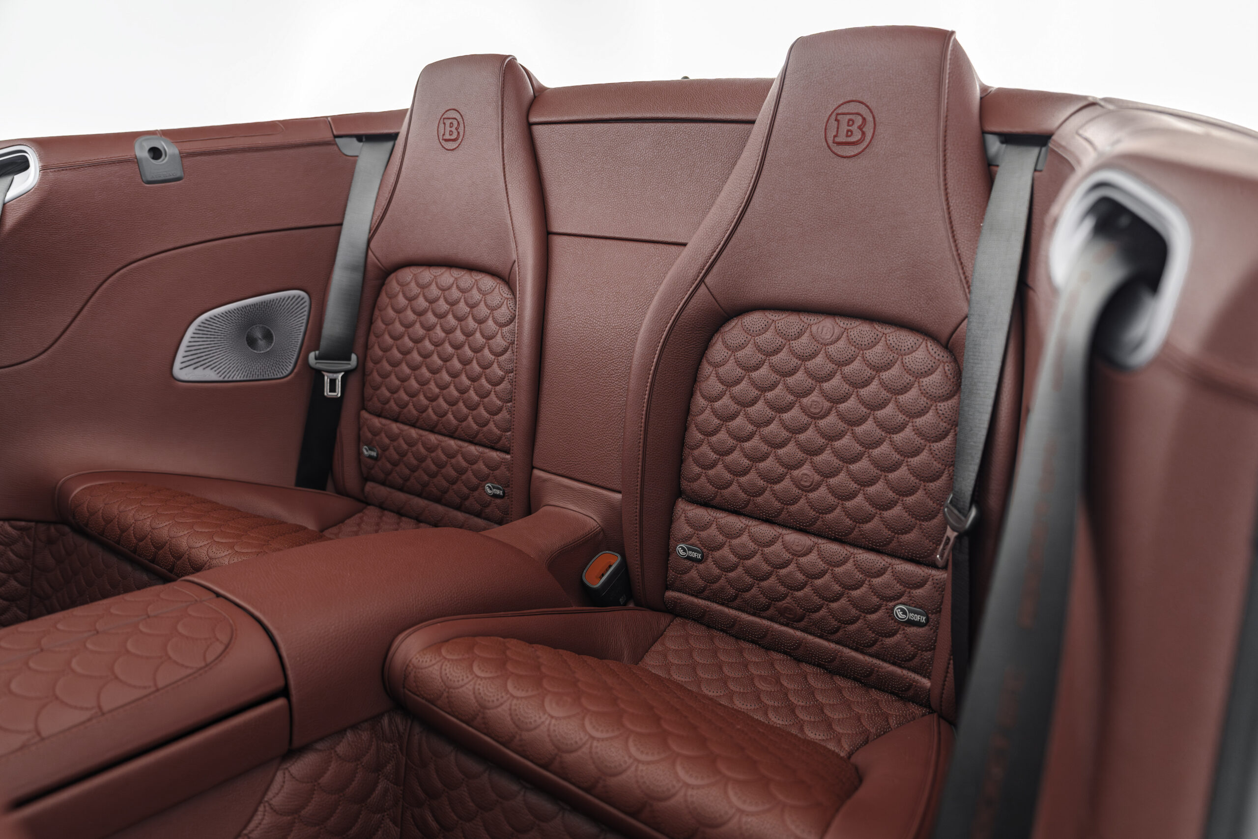Die millimetergenaue Verarbeitung aller Lederarbeiten wird besonders an den präzisen Steppungen im BRABUS „Shell“ Design auf den Sitzflächen, den Armpolstern der Tür‑ und Seitenverkleidungen, den Fussraumverkleidungen sowie den Leder‑Fussbodenschonern sichtbar. Auf den Sitzflächen findet sich auch das charakteristische BRABUS „Doppel‑B“ mehrfach eingeprägt wieder.