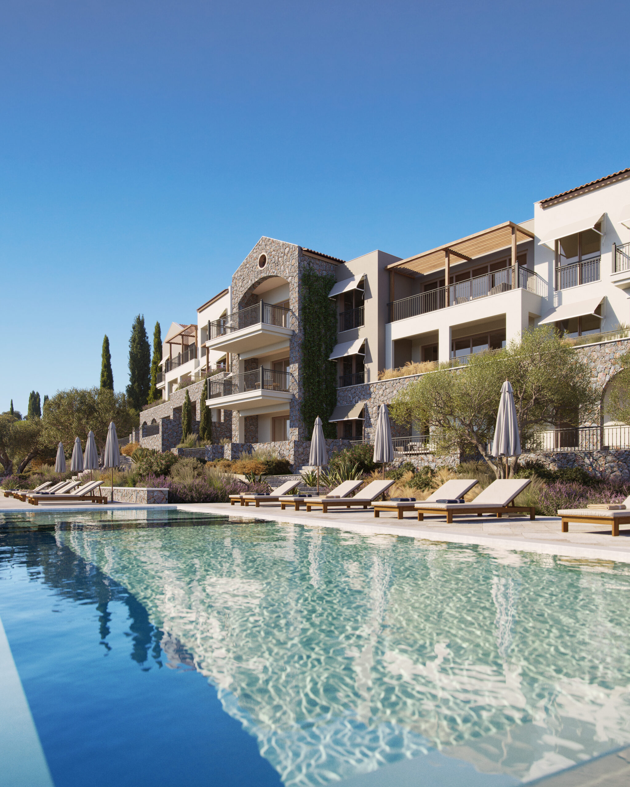 Die Architektur von The Peaks ist direkt von ihrer natürlichen Umgebung inspiriert – mediterran, authentisch und elegant zurückhaltend. Die preisgekrönten Studios Block 722 und NRA-Atelier haben ein Konzept entwickelt, bei dem handbehauener Naturstein die Klippen der Adria widerspiegelt, Terrakottadächer an traditionelle Dörfer erinnern und warme Hölzer die Farben der mediterranen Vegetation aufgreifen.