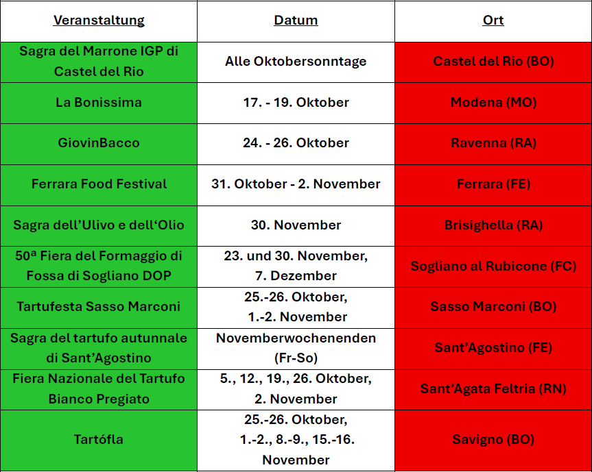 Herbstliche Sagre in der Emilia-Romagna: Trüffel, Käse, Wein und kulinarische Feste 2025