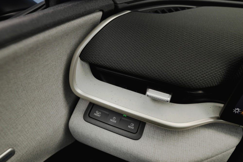 Zwischen der Smartphone-Ablage und den Cupholdern angeordnet ist ein für Fahrer und Beifahrer gleichermassen gut erreichbarer Drehregler für die Audio-Bedienung, über den die Lautstärke eingestellt wird, aber auch Songs und Sender per Track-Funktion gewechselt werden können. Deutlich weiterentwickelt wurde das „ID.Light“: Die interaktive und intuitive vom Fahrer wahrgenommene Lichtleiste erstreckt sich im unteren Bereich der Windschutzscheibe erstmals nicht nur über die Breite der Instrumententafel, sondern nun bis in die Vordertüren.