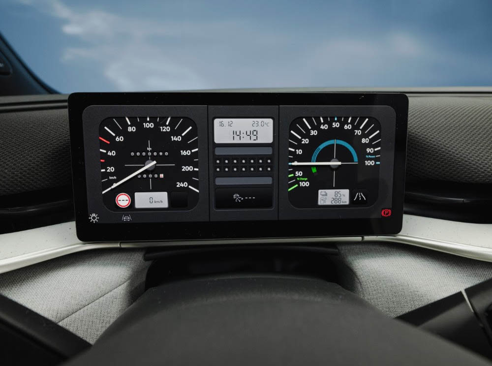 Besondere, unerwartete Details, die eine emotionale Verbindung schaffen sollen, werden im Designteam unter dem Begriff „Secret Sauce“ zusammengefasst. In den ID. Polo ist das spürbare Extra unter anderem mit der „Retro-Anzeige“ eingeflossen: Mit nur einem Tastendruck am Lenkrad oder über das Infotainmentsystem verwandeln sich die digitalen Cockpit-Anzeigen in klassische Ansichten des Golf I aus den 80er Jahren.