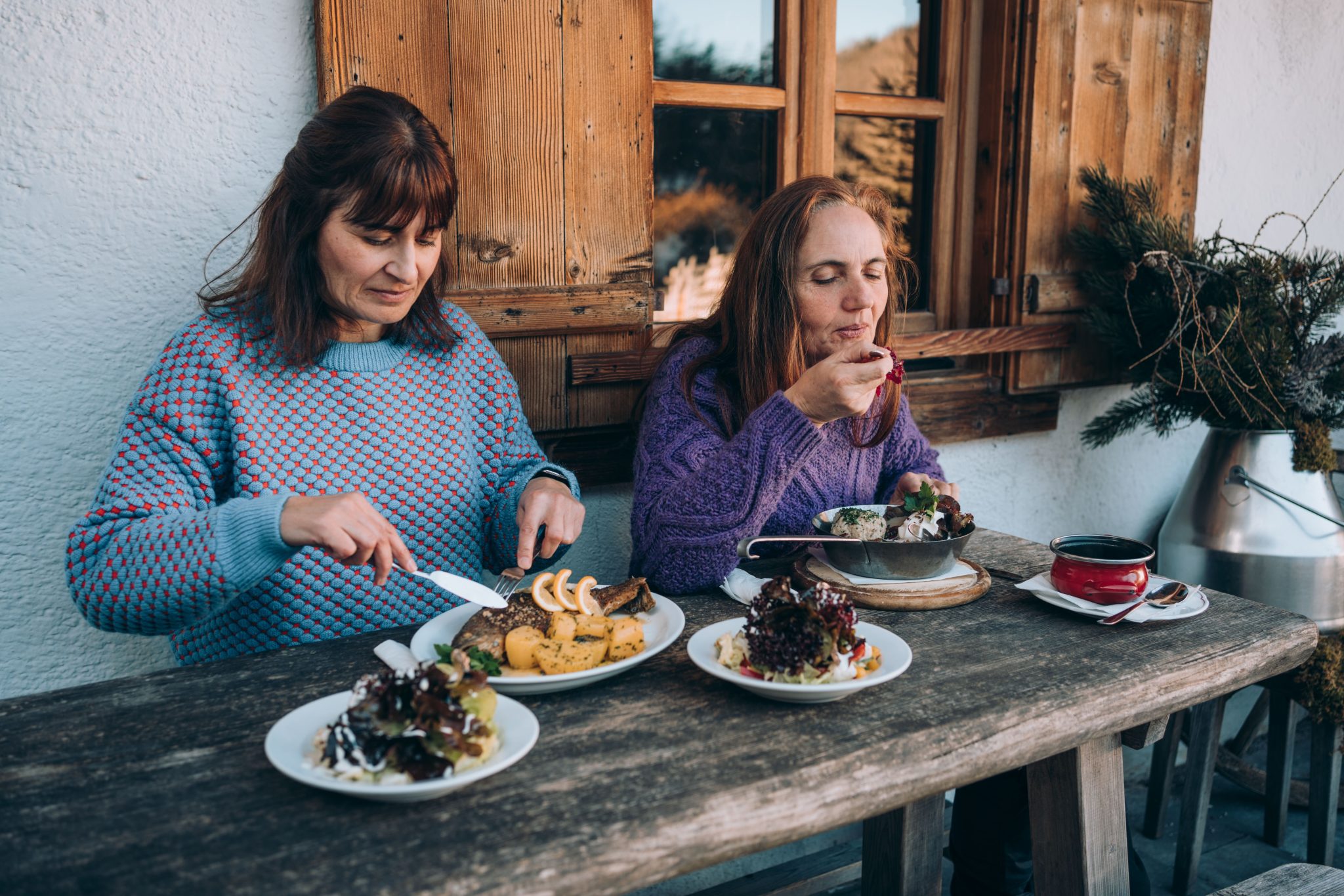 Wenn im Sommer die Wanderwege erwachen oder im Winter die klare Luft zu spüren ist, führt jede Bewegung in den Bergen unweigerlich zu einem Gefühl von Zusammengehörigkeit. Auf Hütten sitzt man beisammen, teilt Geschichten und kommt mit Menschen ins Gespräch, die man eben noch nicht kannte. Nach einer Skitour hinein in die warme Stube, nach einer herbstlichen Wanderung ein Teller Kaspressknödel oder Käsespätzle, nach einem frischen Frühjahrsmorgen eine warme Suppe – Kulinarik wird am Berg zum verbindenden Erlebnis.